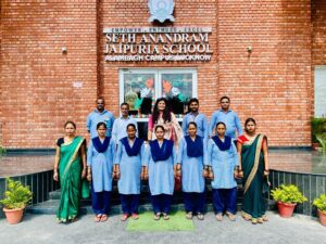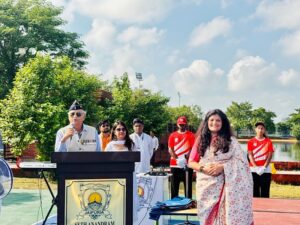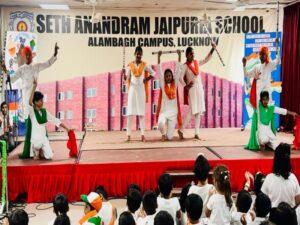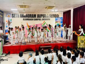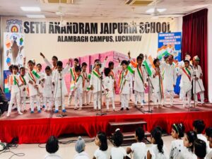 “A nation’s culture resides in the hearts and in the soul of its people.” – Mahatma Gandhi The campus of Seth Anandram Jaipuria School, Alambagh resonated with patriotism and pride as the school celebrated the 79th Independence Day in unison with the grand Investiture Ceremony on 15th August 2025. The auspicious occasion was graced by Major General Abhi Parmar as the Chief Guest. The Principal, Ms. Gunjan Danani, along with distinguished dignitaries Mr. Manish Mehrotra, Mr. Kishore Mehrotra, and Ms. Raghini Mehrotra, presided over the solemn function. The programme commenced with a smart and synchronised March Past by the four houses, filling the atmosphere with vigour and discipline. The Chief Guest unfurled the Tricolour, and the entire gathering sang the National Anthem in unison, a moment that stirred every heart with patriotic pride. The highlight of the day was the Investiture Ceremony, where the newly elected Student Council was formally vested with their responsibilities. The Head Boy, Head Girl, Sports and Cultural Leaders, House Captains, Vice-Captains, and Club Representatives were adorned with badges and sashes. They took the solemn Oath of Office, pledging to uphold the school’s values of integrity, leadership, and service. In his inspiring address, Major General Abhi Parmar urged the young students to emulate the ideals of discipline, courage, and selfless service to the nation. The Principal, Ms. Gunjan Danani, congratulated the council members and reminded them to lead by example while carrying forward the glorious legacy of the school. The combined celebration of Independence Day and Investiture Ceremony was a momentous occasion that not only rekindled the flame of freedom but also heralded the dawn of new leadership within the school.