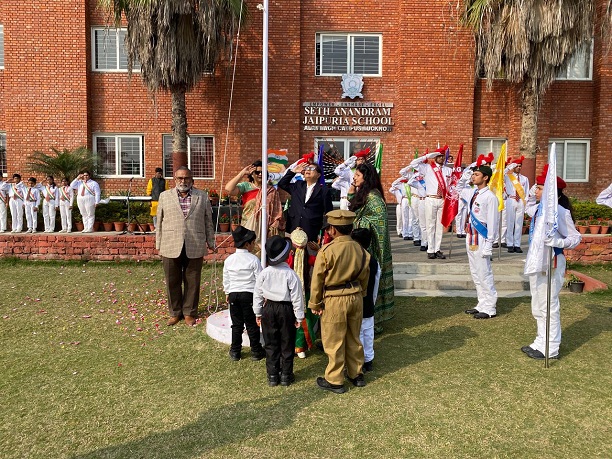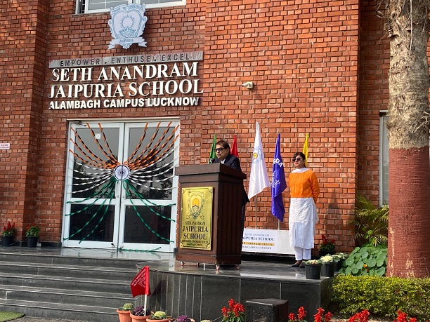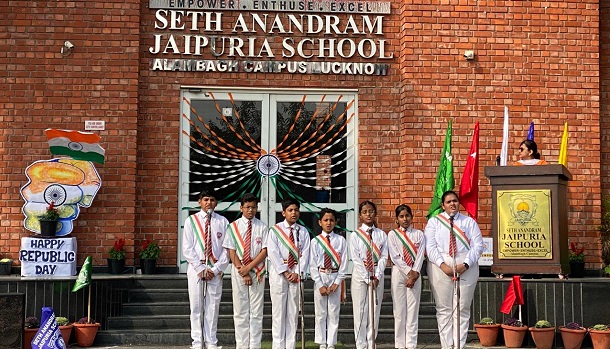 Seth Anandram Jaipuria School, Alambagh Campus celebrated Republic Day with great pride and patriotic fervour. The programme commenced with the hoisting of the National Flag, followed by the National Anthem, filling the campus with a deep sense of respect and unity.